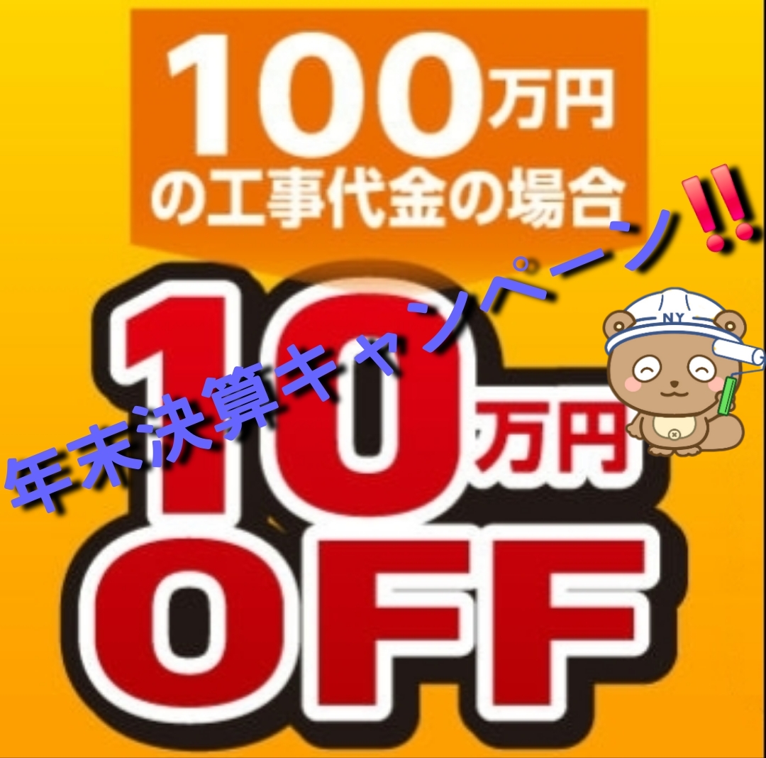 代表の榮村です❗ 今年も残り1か月と少しになりました。だいぶ肌寒くなりましたね。 さて、今回は外壁屋根塗装をご検討の方にビックニュースです!12月末までの限定でnyぷらす🏡に塗装工事をお任せいただいた方に、最大30万円値 […] -