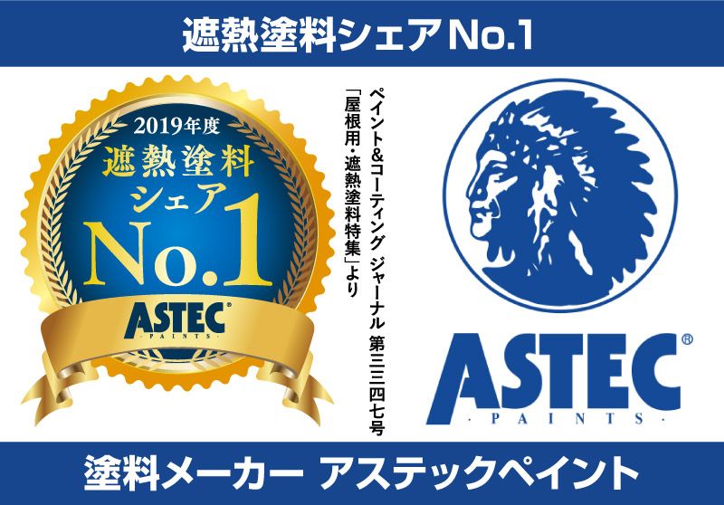 業界最大手の日本ペイントや関西ペイントのような生粋の国内メーカーではなく、海外発祥のメーカーということで不安に思う方もいるかもしれませんが、アステックペイントは遮熱塗料のメーカーシェア1位になるなど、既に日本国内でも実績のあるメーカーです。